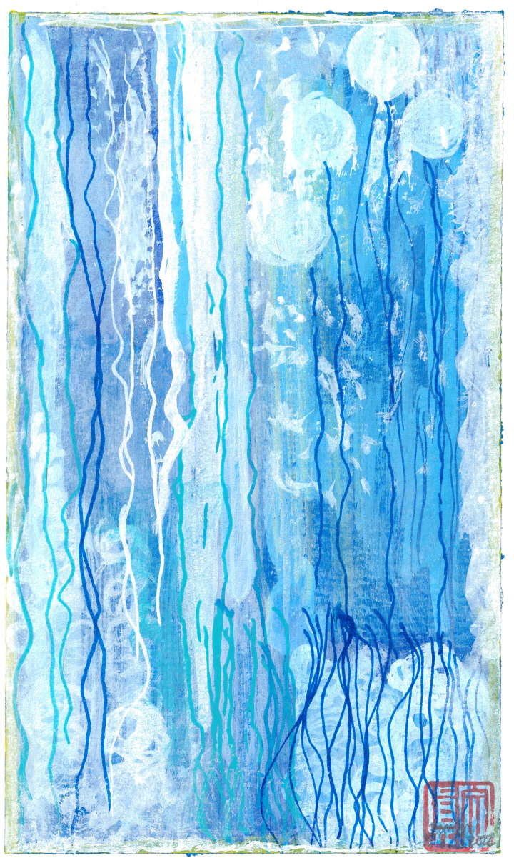 "Air & Water" (2022) - Acrylic paint, watercolor, and paint markers on acrylic paper.